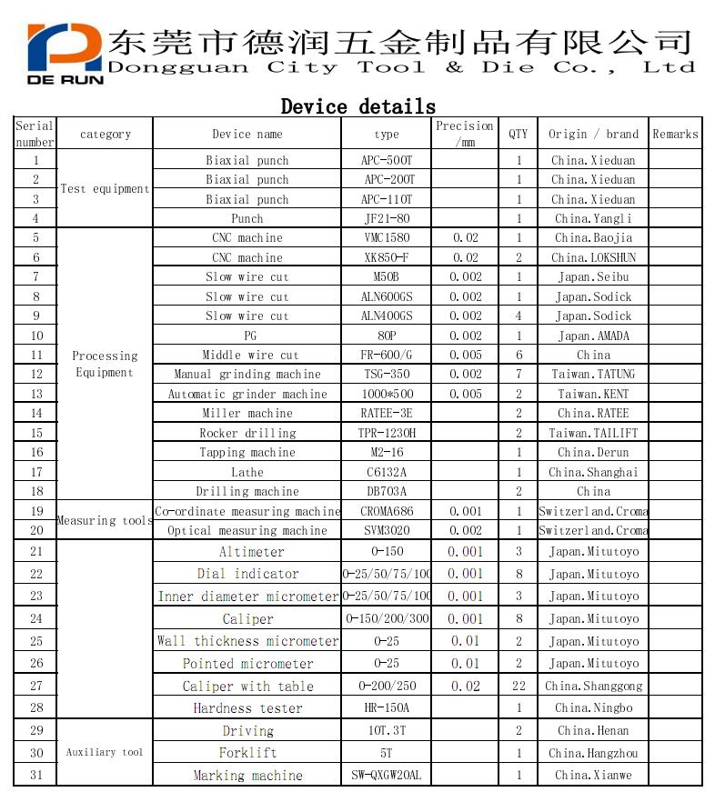 Address:No. 4, Lane 8, Minchang Road, Fifth Industrial Zone, South Gate, Humen Town, Dongguan City, Guangdong Province, China,Email:derun.cao@derunmold.com Tel:0769-85251591 Fax:0769-85251561 Contact:Ms Zi+86-137 1229 6994